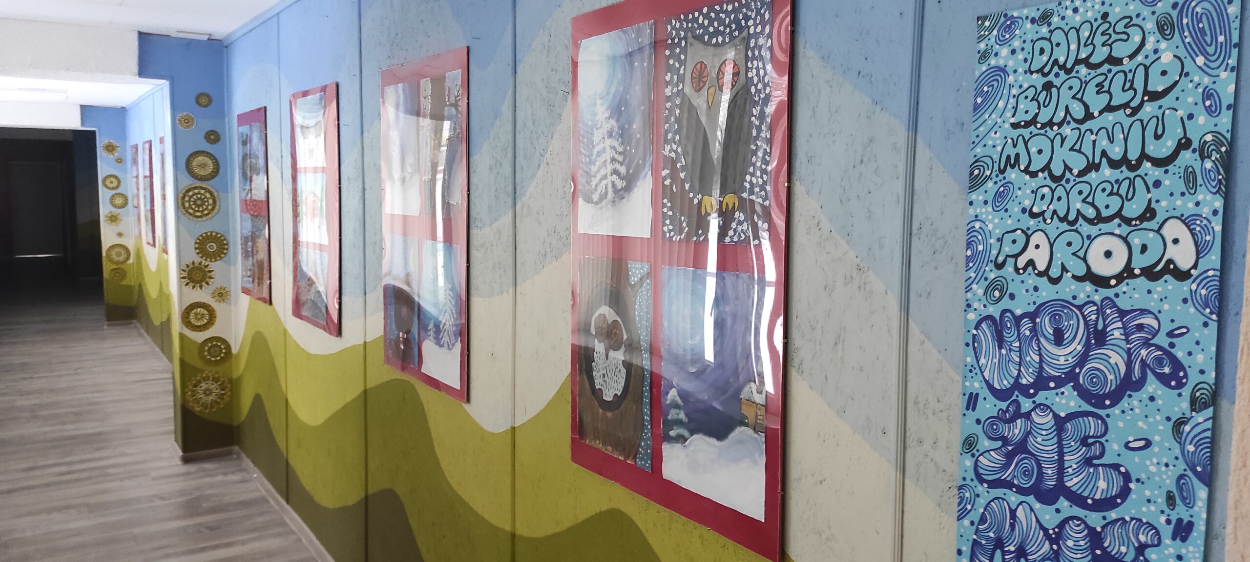 Moksleivių namuose eksponuojama dailės būrelio mokinių darbų paroda ,, Viduržiemis „. Jau įpusėjo žiema. Kiek jos pradėjo, tiek dar ir liko. Įvairius žiemos vaizdus, nuotaikas, mintis vaikai bandė perteikti savo piešiniuose. Darbai atlikti guašu, spalvotais pieštukais, flomasteriais. Mokytoja G. Norvaišienė.