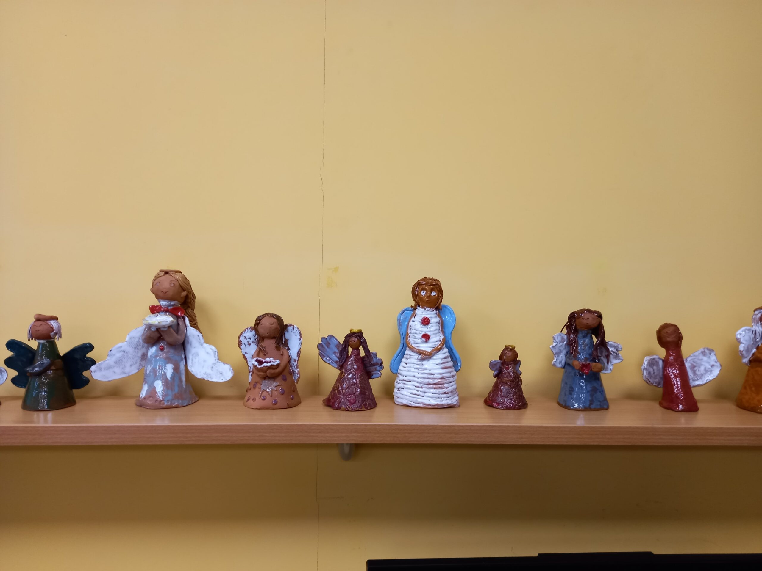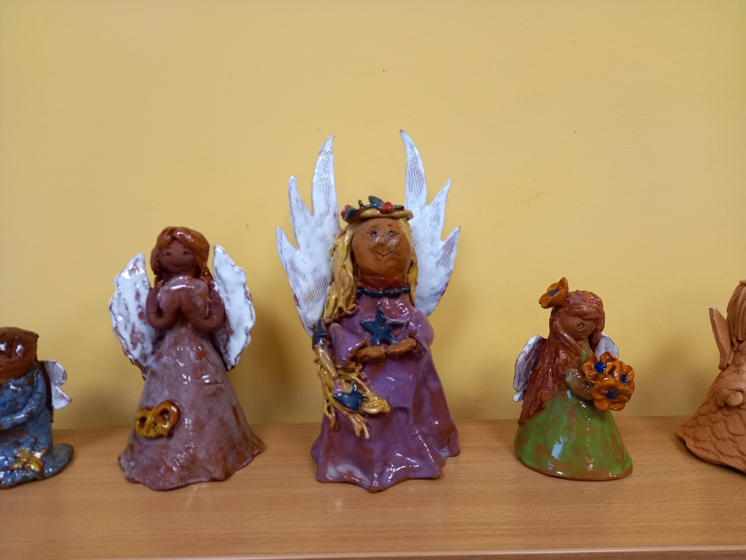 Keramikos būrelių mokytojos – Geleta Norvaišienė, Virginija Jakevičienė ir Audronė Markutienė surengė mokinių darbų parodą bibliotekoje „Žiburėlis“. Angelas- Kalėdų šauklys, kviečiantis pasiruošti ir sutikti gražiausias metų šventes. Daug vaikiškos šilumos įdėta kuriant angelų figūrėles. Aplankykite „Angelų slėnį“ per visą gruodžio mėnesį.