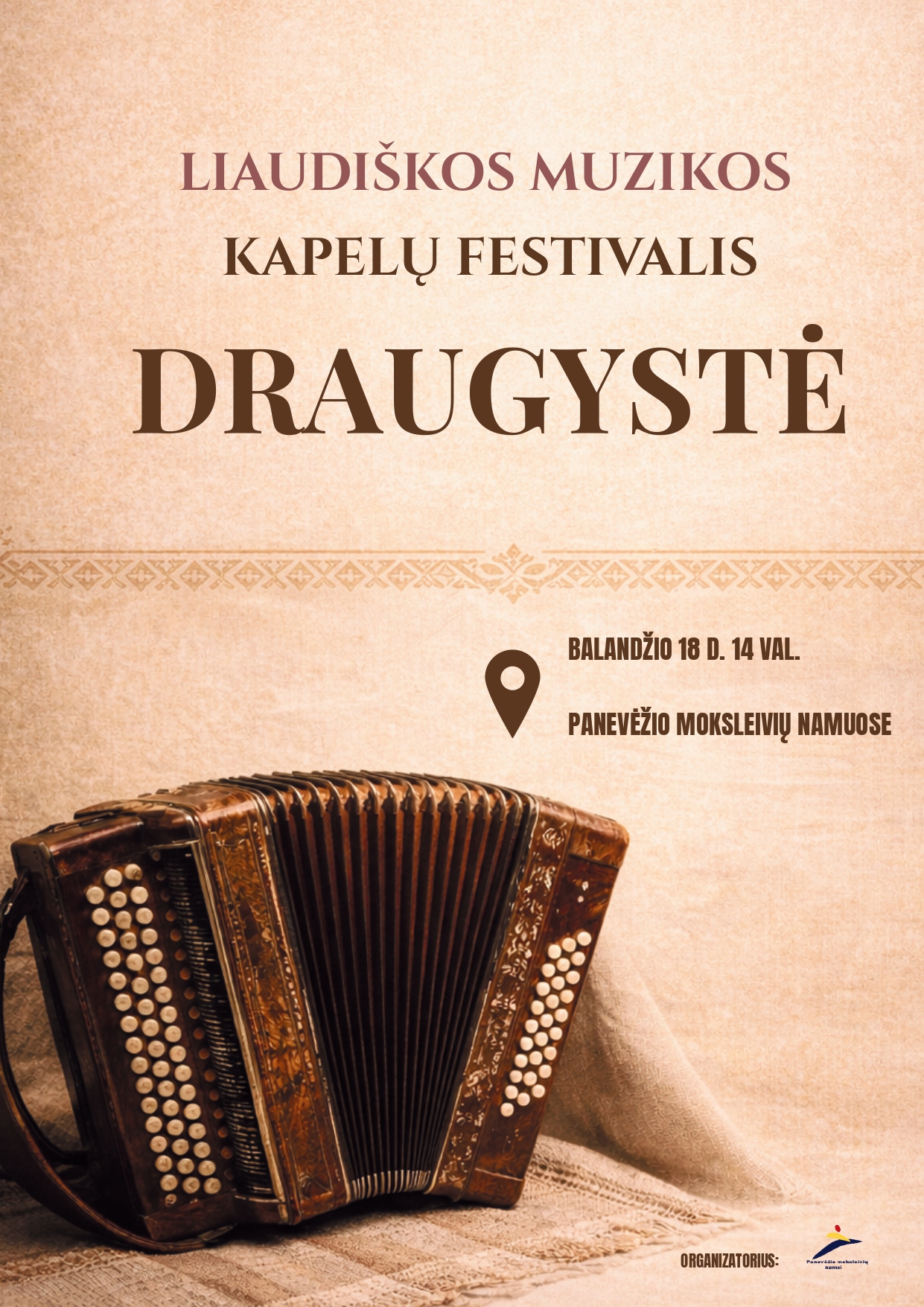 Balandžio 18-ąją Moksleivių namuose skambėjo gyva, šilta ir širdį paliečianti muzika – čia vyko Panevėžio apskrities liaudiškos muzikos kapelų festivalis „Draugystė“. Renginys subūrė įvairaus amžiaus žmones, kuriuos vienija meilė tradicijoms, autentiškam skambesiui ir lietuviškos kultūros dvasiai.