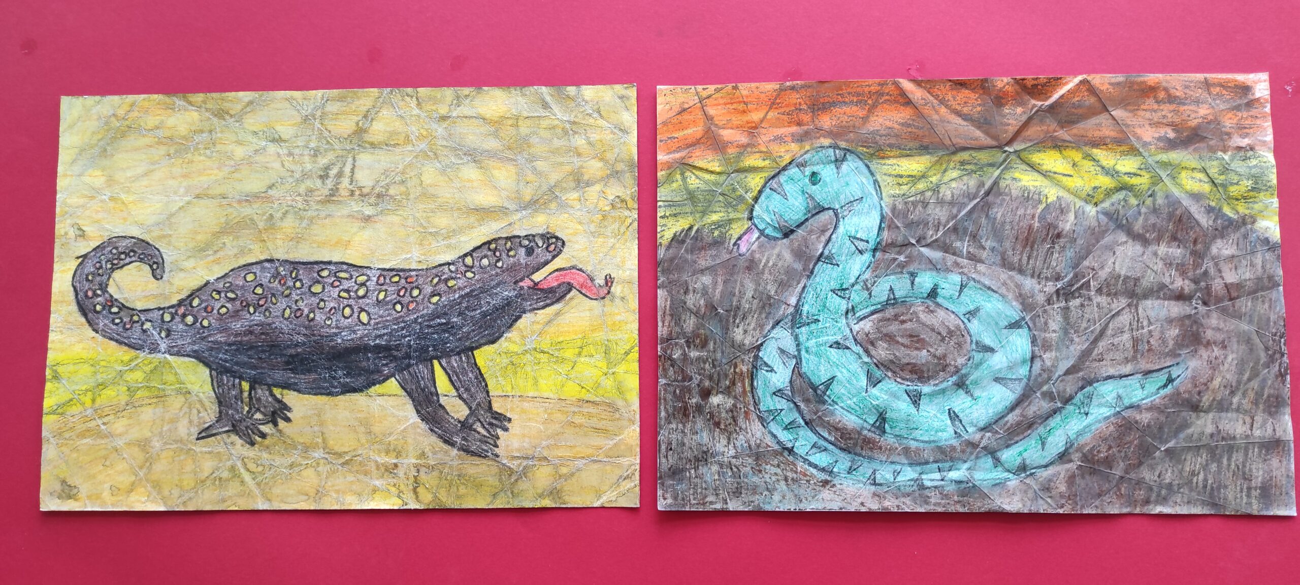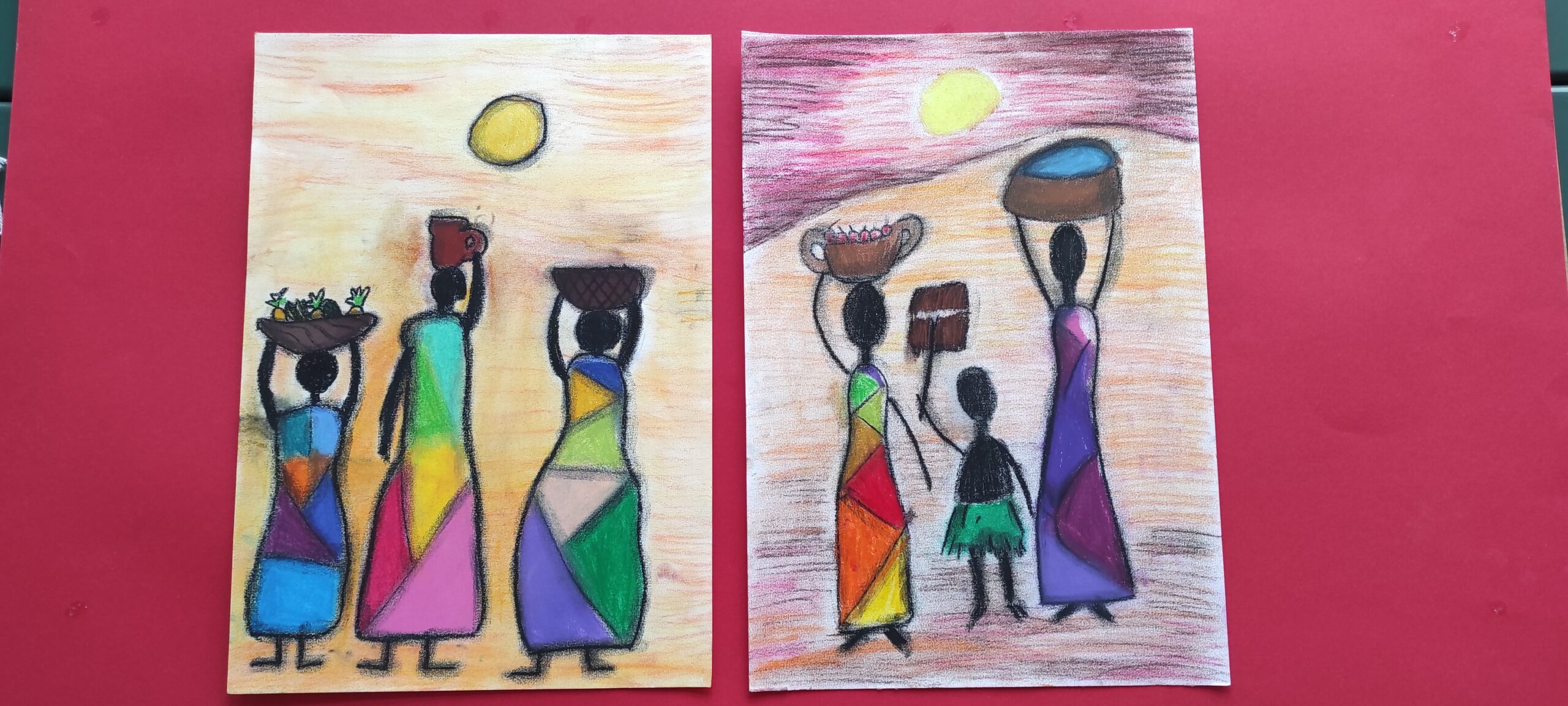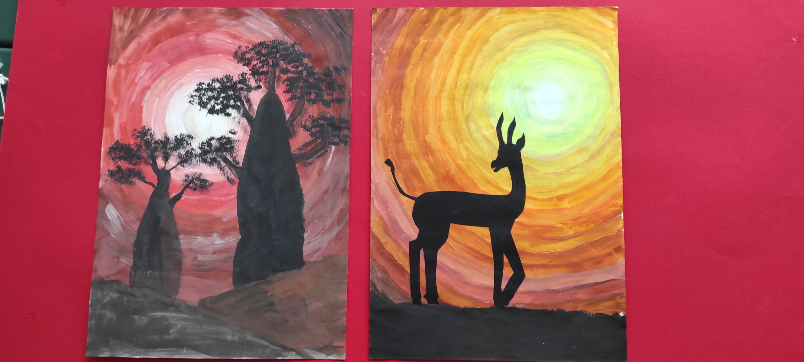 Tolimas Afrikos žemynas, jo nuostabi gamta, ten gyvenantys gyvūnai, žmonės, juos supanti aplinka… Visa tai galima pamatyti spalvinguose dailės būrelio mokinių piešiniuose, parodoje ,, Afrikos spalvos „.