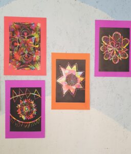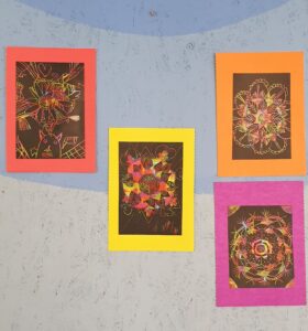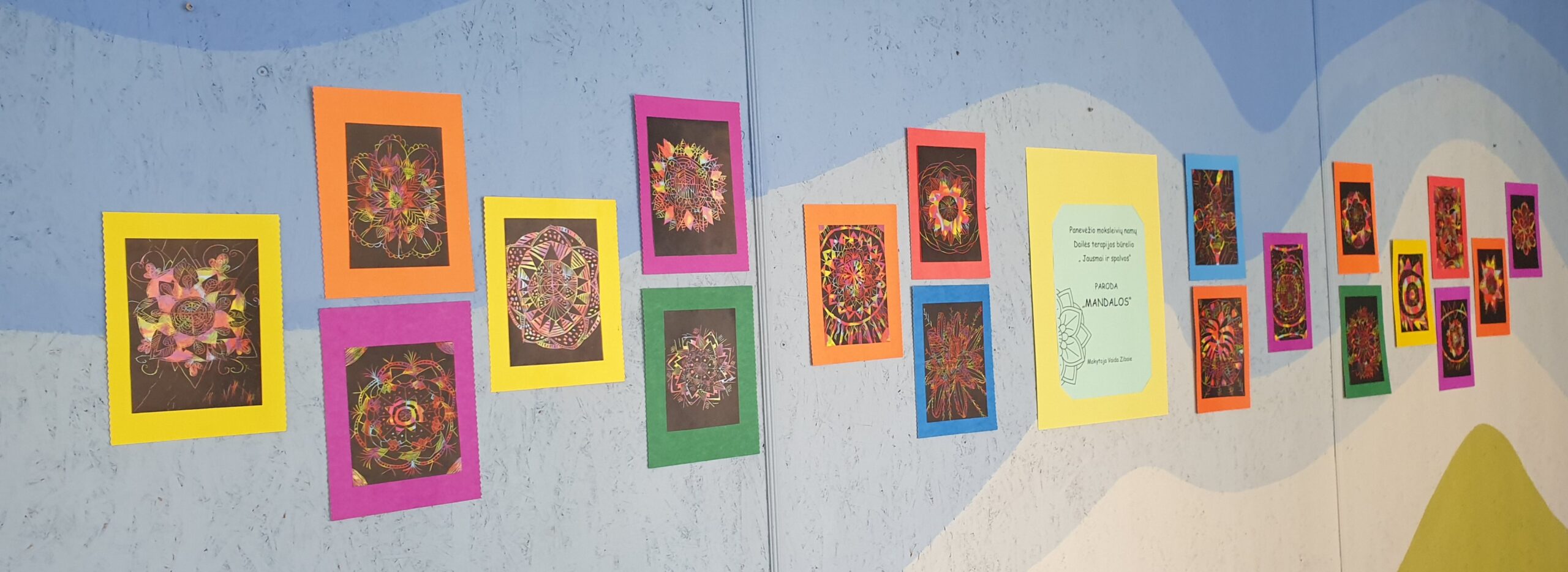 Mandalų piešimas – kūrybingas ir atpalaiduojantis procesas. Klausydamiesi ramios muzikos, dailės terapijos būrelio „ Jausmai ir spalvos“ vaikai smulkiomis detalėmis, kaip dėlionę, braižė savo sukurtą mandalą. Šis žodis reiškia ne tik ratą, apskritimą, bet ir bendruomenę, susirinkimą – tai , kas skirtingas dalis sujungia į bendrą visumą. Mokytoja Vaida Zibaie.