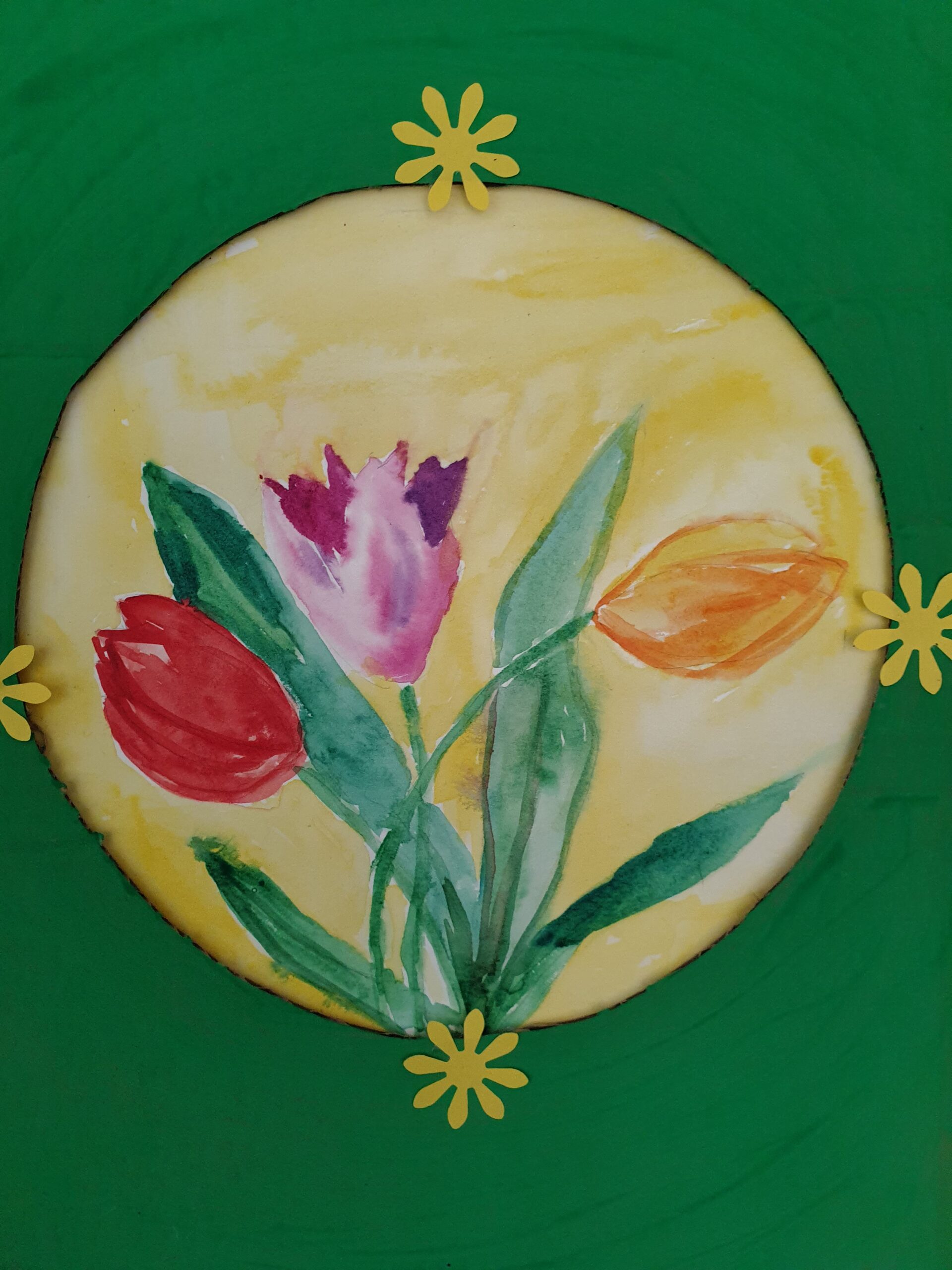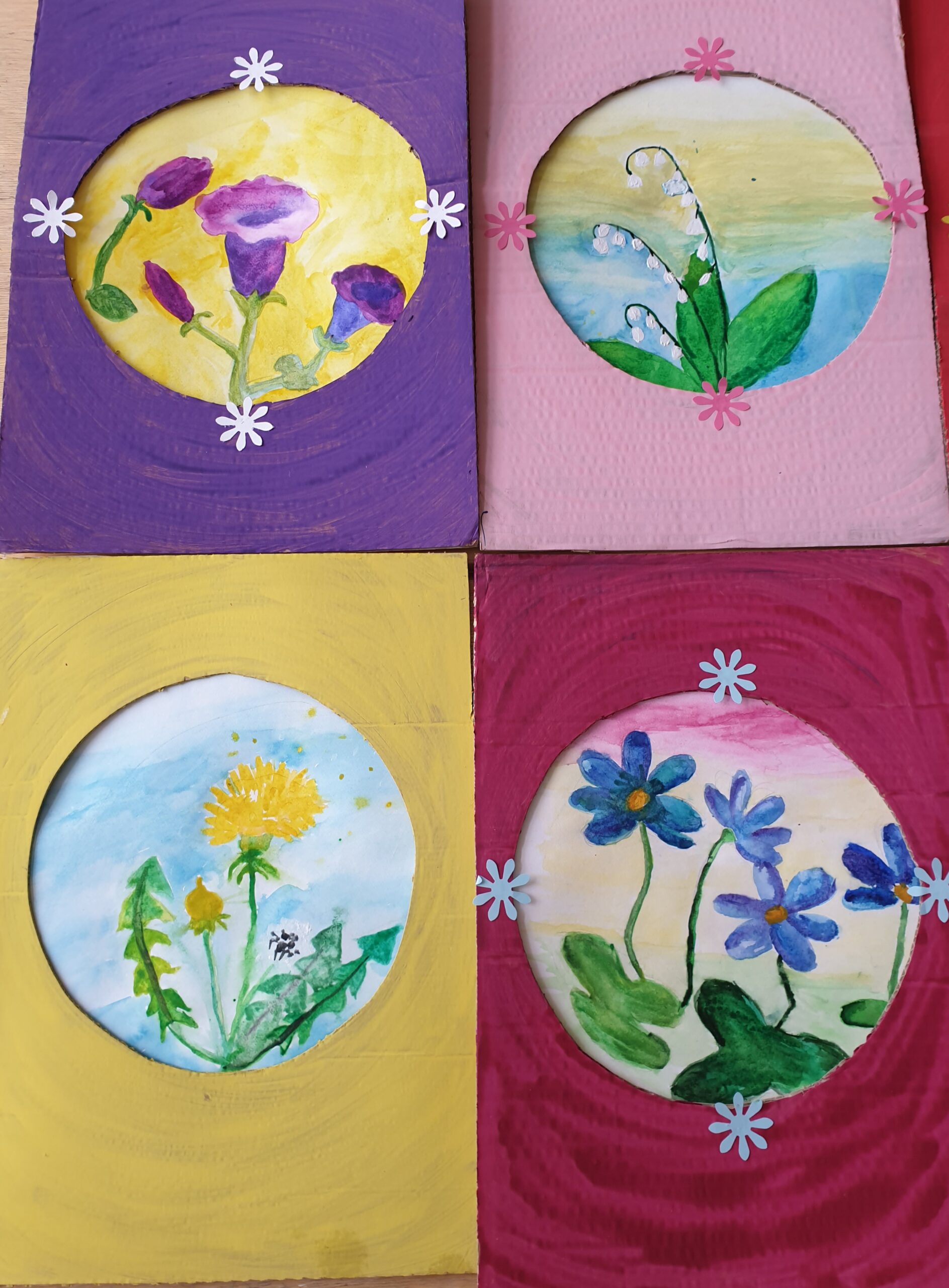 Gamtoje galima rasti priemonių, pagerinančių emocinę būklę. Vienos tokių yra gėlės, kurios sukelia teigiamas emocijas, pakylėja, padeda pajusti gyvenimo grožį. Dailės terapijos būrelio „Jausmai ir spalvos“ mokiniai pavasarinių gėlių grožį, pastelinėmis spalvomis perteikė popieriuje.