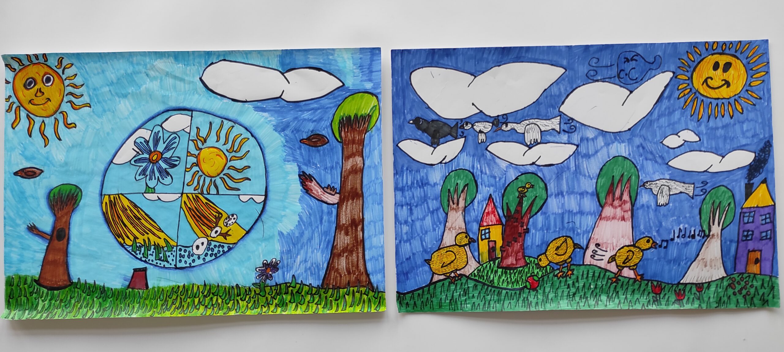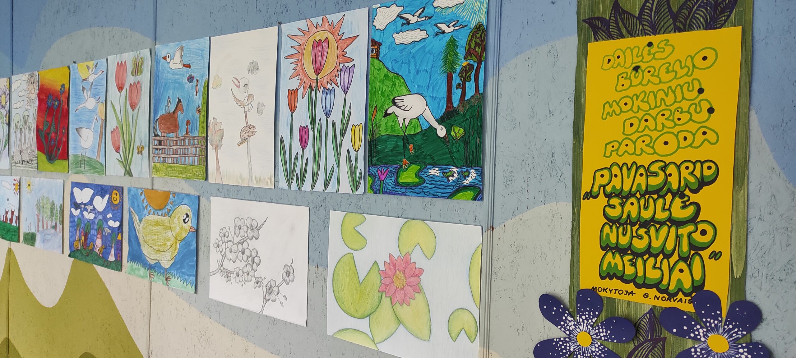 Pavasarį vis dažniau pasirodanti saulė žadina gamtą iš gilaus miego…pradedantys žaliuoti medžiai, pirmosios gėlės, paukščių čiulbėjimas, šiltesni orai. Šios nuotaikos įkvėpti dailės būrelio mokiniai surengė piešinių parodą ,,Pavasario saulė nušvito meiliai „. Mokytoja G. Norvaišienė.