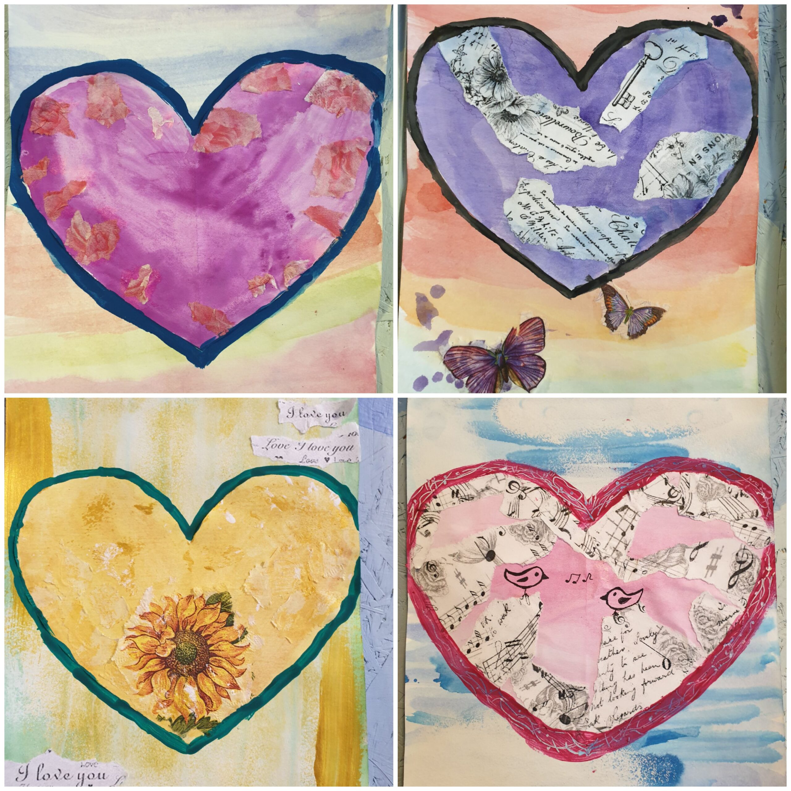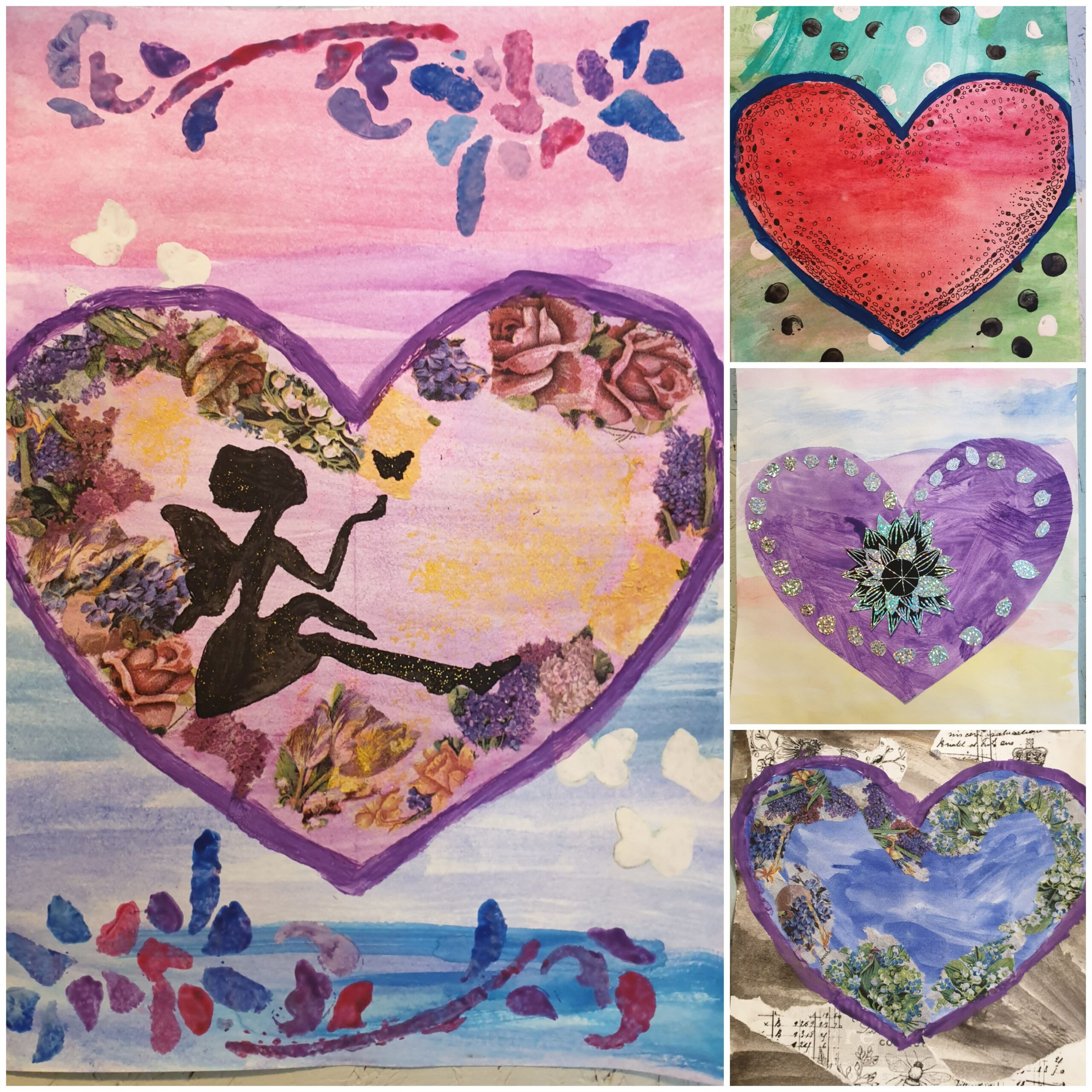 Dailės terapijos būrelio ” Jausmai ir spalvos” vaikai darbuose stengėsi panaudoti kuo įvairesnę dailės techniką.Kūrybingai piešė, klijavo, štampavo širdeles, kurias dovanos savo draugui.